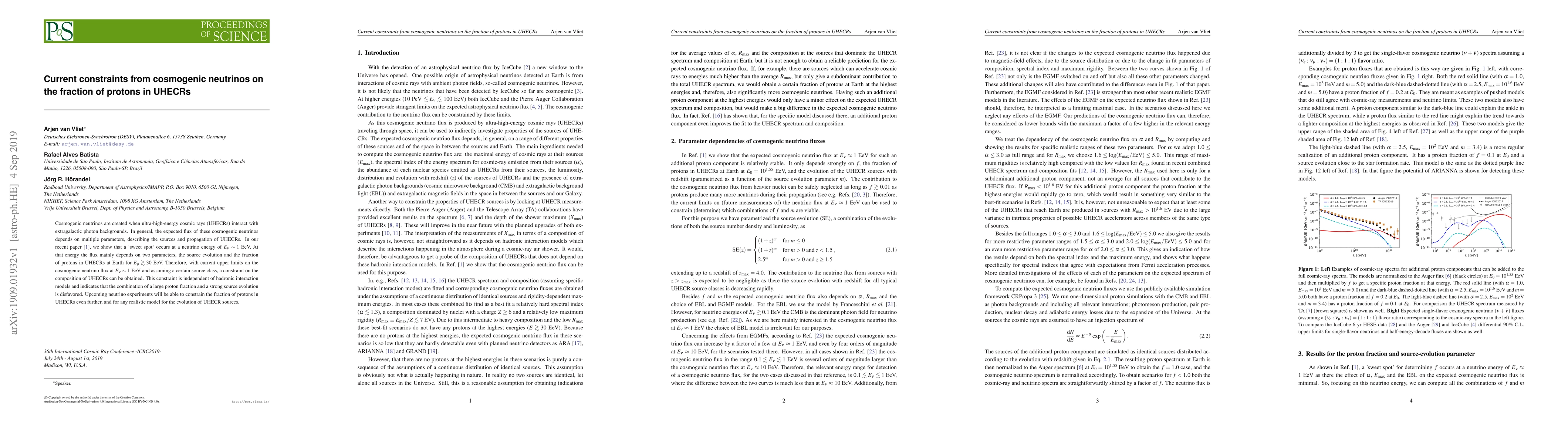 This paper discusses how current constraints from cosmogenic neutrinos, produced by UHECR interactions, can limit the fraction of protons in UHECRs, especially at energies above 30 EeV. It finds that a large proton fraction combined with strong source evolution is disfavored, independent of specific interaction models.