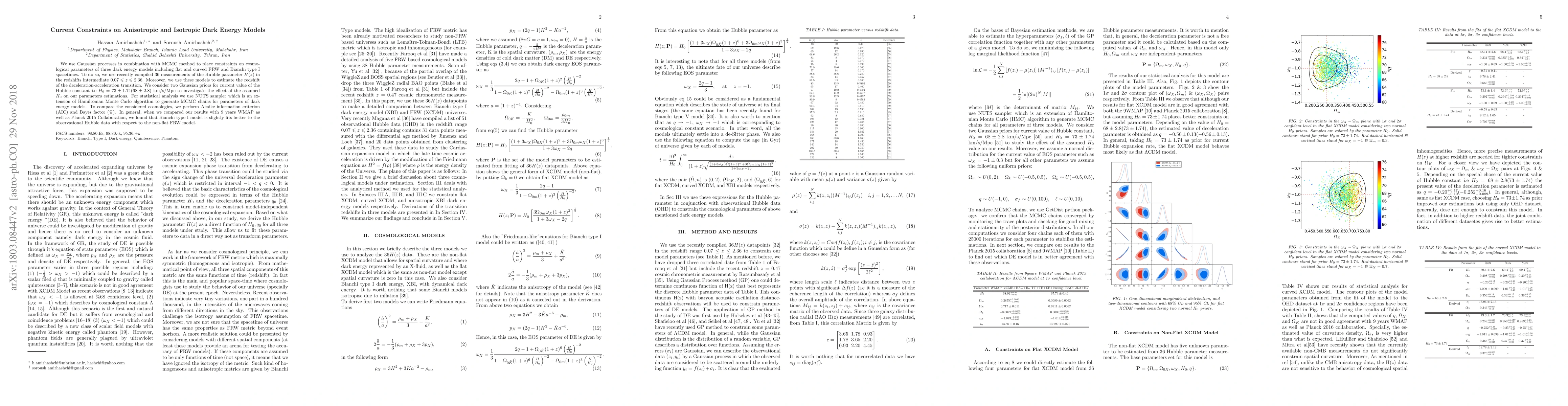 Researchers used Gaussian processes and MCMC method to constrain cosmological parameters of dark energy models, finding that the Bianchi type I model fits better than the non-flat FRW model to observational Hubble data.
