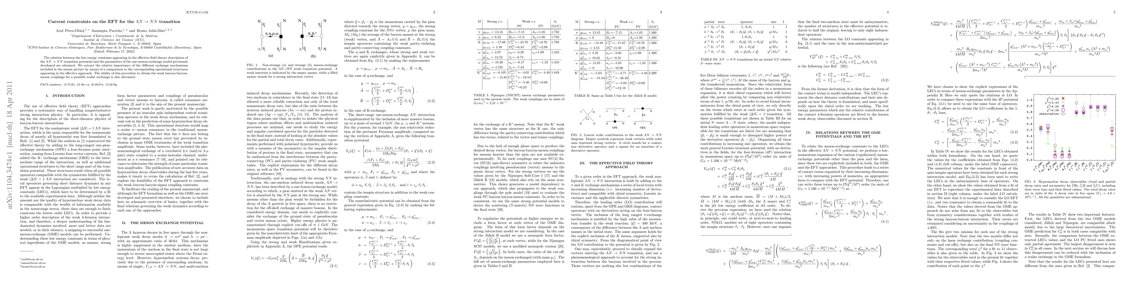 This paper establishes the connection between low-energy constants in the effective field theory for the ΛN → NN transition and parameters from a one-meson-exchange model, assessing the relative significance of various exchange mechanisms and exploring the potential for weak baryon-baryon-meson couplings via scalar exchange.