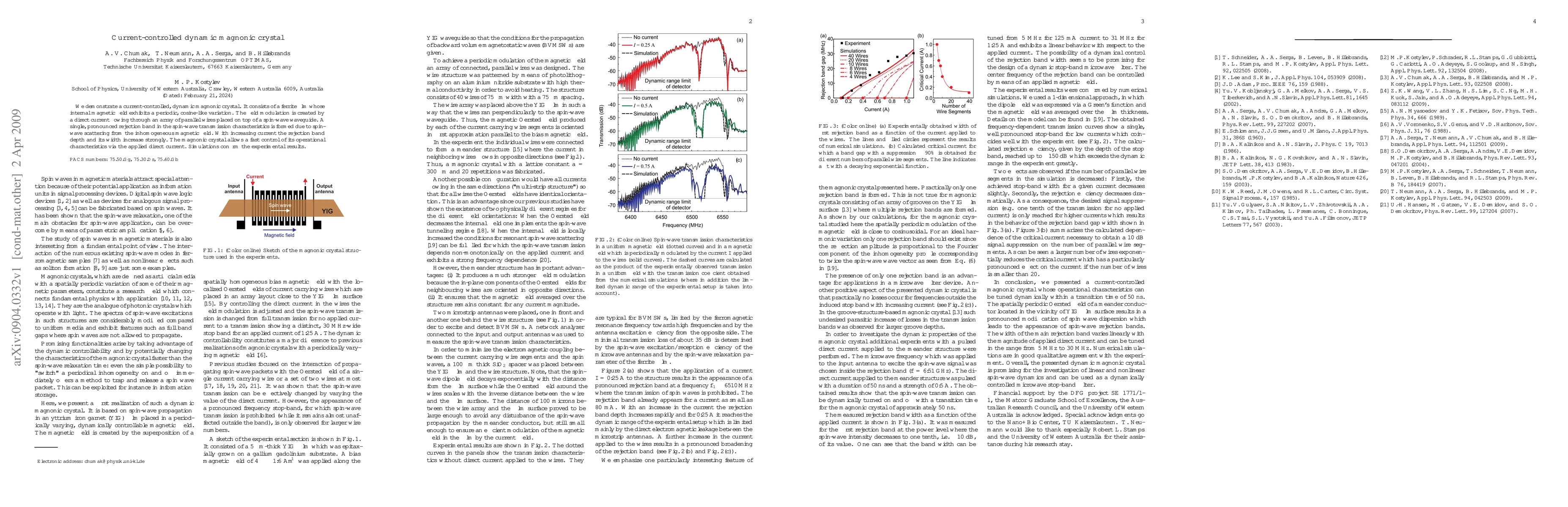 The research presents a current-controlled dynamic magnonic crystal utilizing a ferrite film with a modulated periodic magnetic field, enabling precise tuning of spin-wave transmission via direct current. Experimental and simulation results show that the depth and width of the spin-wave rejection band increase with higher currents.