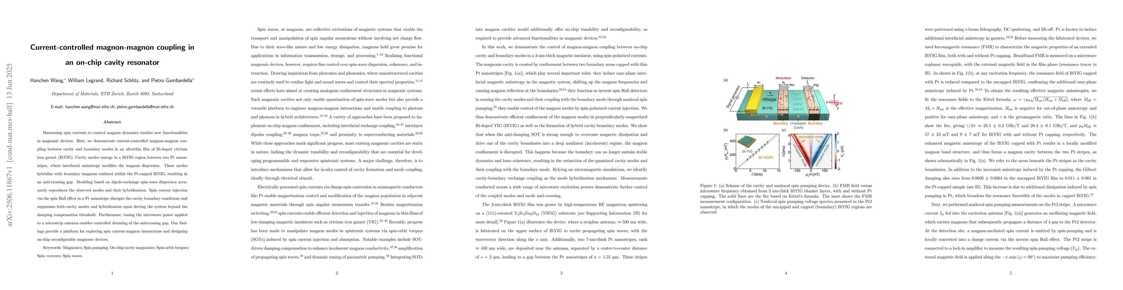 Researchers demonstrate current-controlled magnon-magnon coupling in a BiYIG film using Pt nanostripes and a microstrip antenna. This method allows for reconfiguration of magnonic devices and provides a platform for exploring spin current-magnon interactions.