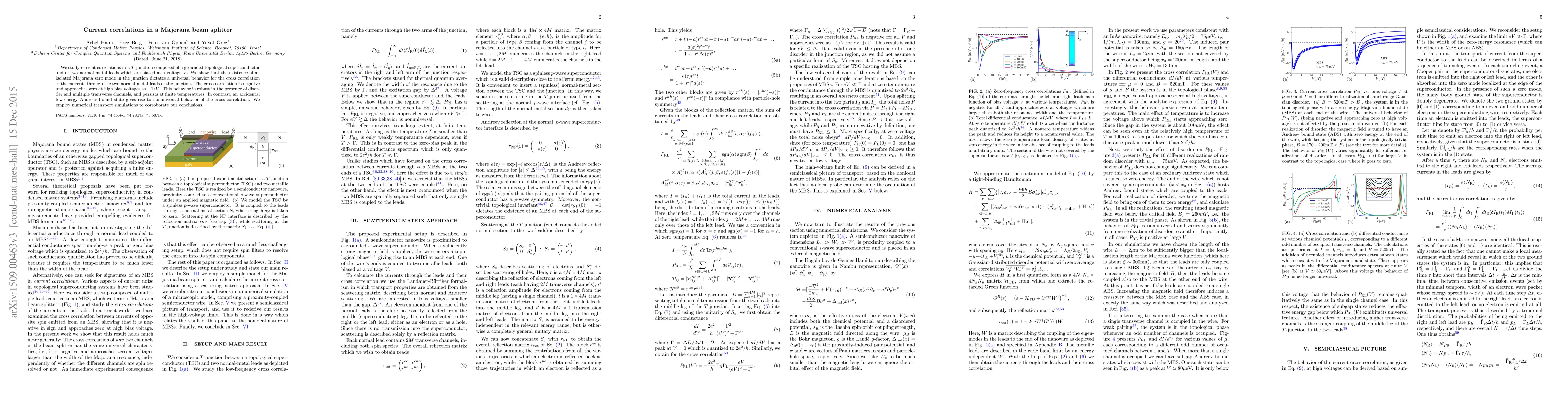 We study current correlations in a $T$-junction composed of a grounded topological superconductor and of two normal-metal leads which are biased at a voltage $V$. We show that the existence of an isolated Majorana zero mode in the junction dictates a universal behavior for the cross correlation of the currents through the two normal-metal leads of the junction. The cross correlation is negative and approaches zero at high bias voltages as -1/$V$. This behavior is robust in the presence of disorder and multiple transverse channels, and persists at finite temperatures. In contrast, an accidental low-energy Andreev bound state gives rise to nonuniversal behavior of the cross correlation. We employ numerical transport simulations to corroborate our conclusions.