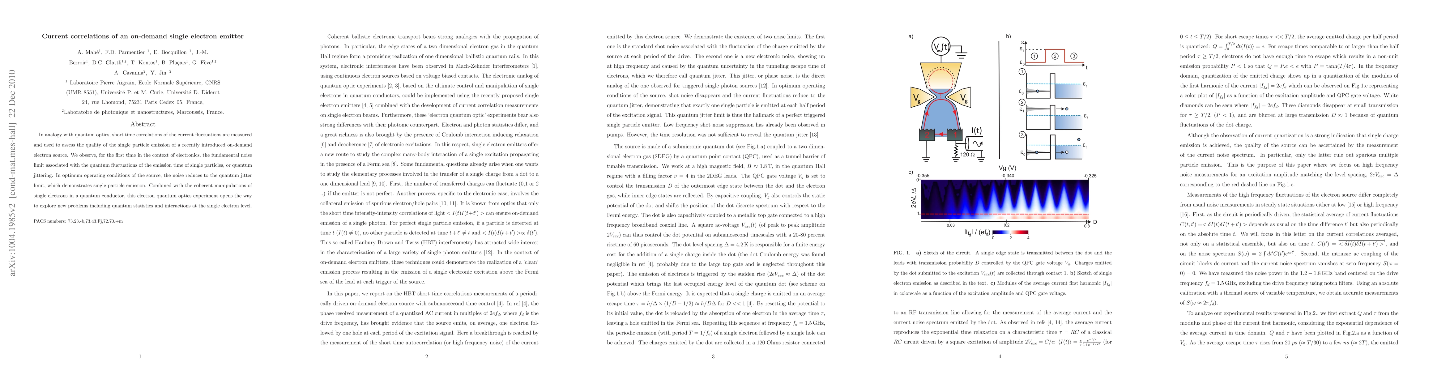 This paper investigates an on-demand electron source using quantum dot technology, revealing quantum jitter as fundamental noise in electron emission time fluctuations. Under optimal conditions, the noise reaches the quantum jitter limit, confirming single particle emission and paving the way for exploring quantum statistics and interactions at the single electron level.