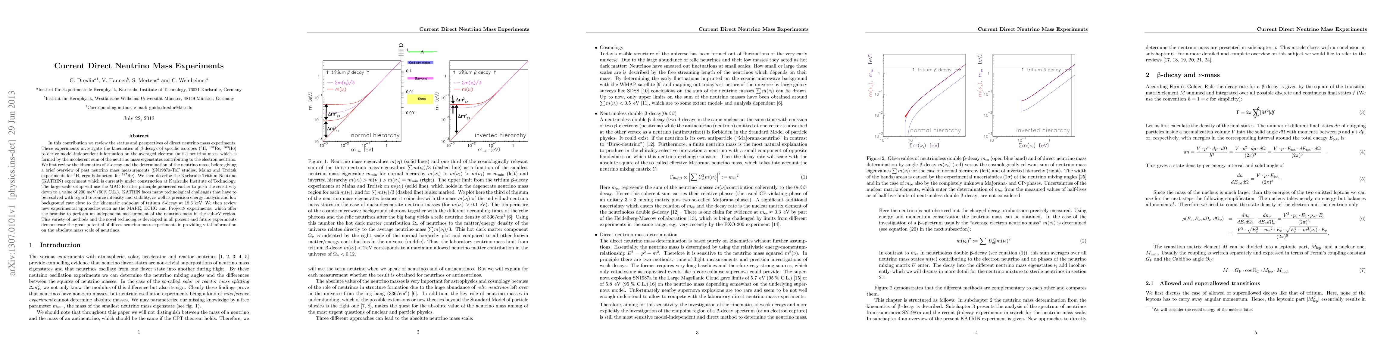 This paper reviews current direct neutrino mass experiments, focusing on the kinematics of $\beta$-decays to determine the electron neutrino mass. It highlights the KATRIN experiment's ambitious goal to achieve a sensitivity of 200 meV and discusses technological challenges. The paper also introduces new experimental approaches like MARE, ECHO, and Project8, emphasizing the potential for these methods to provide crucial insights into the absolute neutrino mass scale.