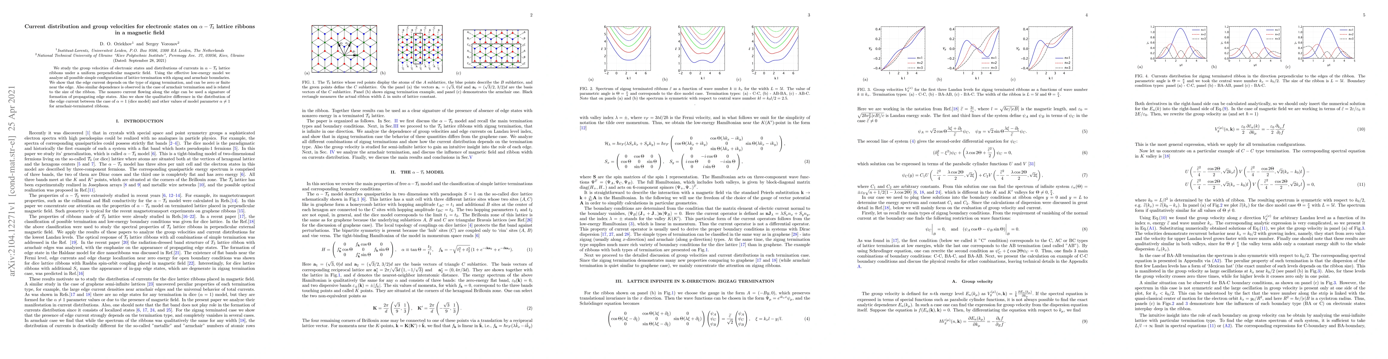 Research investigates how electrons behave in narrow strips of a special lattice material called $eta- au_3$ when exposed to a magnetic field, finding that edge currents can vary depending on the lattice's termination type and ribbon size.