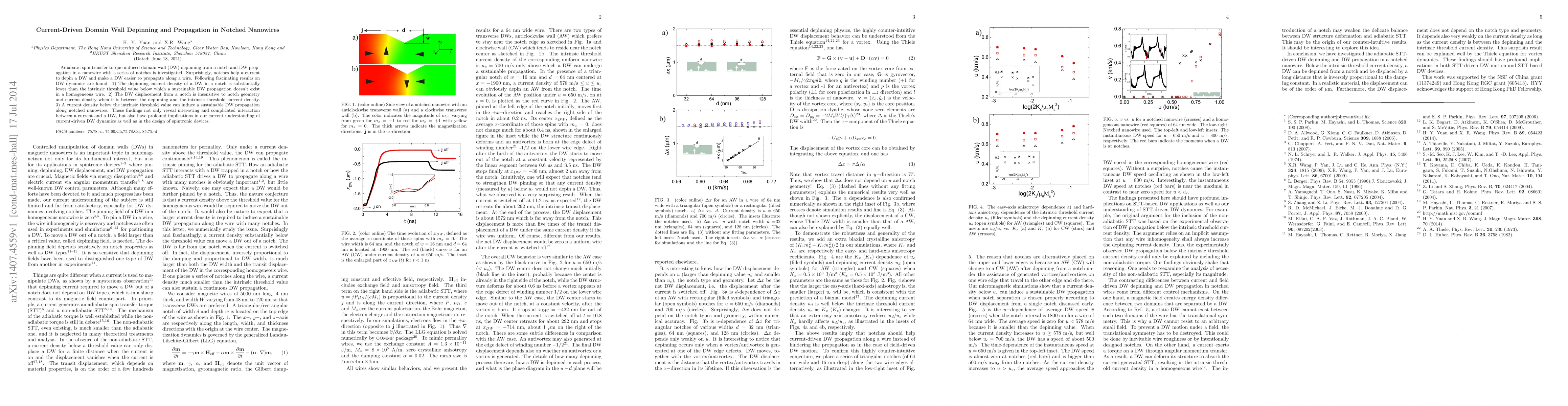 This research investigates how notches in nanowires affect the depinning and propagation of spin transfer torque-induced domain walls (DWs), finding that notches lower the depinning current density and enable DW propagation even below intrinsic thresholds, with implications for spintronic device design.