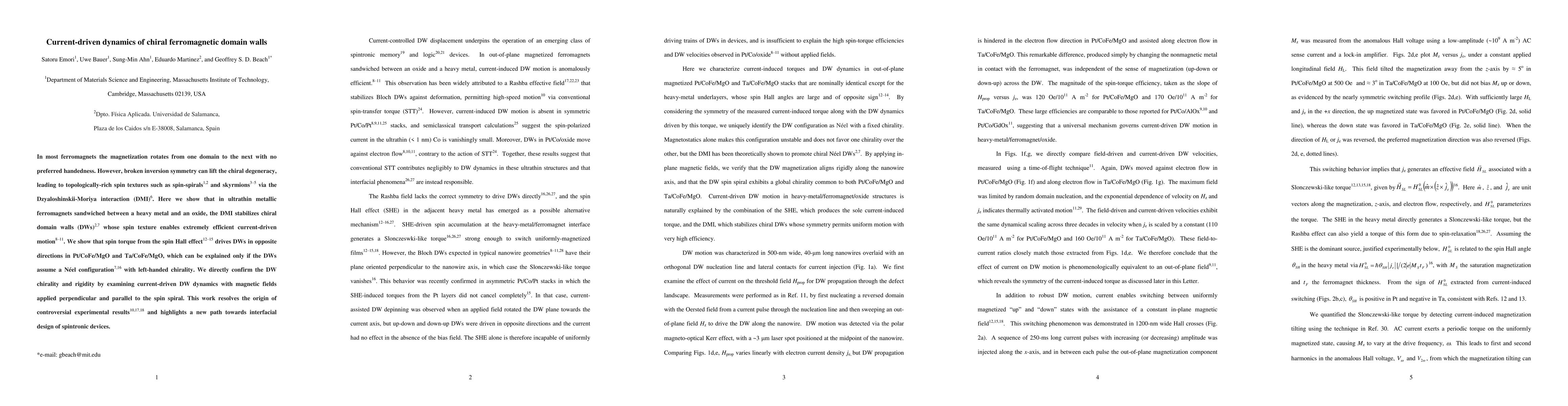 In most ferromagnets the magnetization rotates from one domain to the next with no preferred handedness. However, broken inversion symmetry can lift the chiral degeneracy, leading to topologically-rich spin textures such as spin-spirals and skyrmions via the Dzyaloshinskii-Moriya interaction (DMI). Here we show that in ultrathin metallic ferromagnets sandwiched between a heavy metal and an oxide, the DMI stabilizes chiral domain walls (DWs) whose spin texture enables extremely efficient current-driven motion. We show that spin torque from the spin Hall effect drives DWs in opposite directions in Pt/CoFe/MgO and Ta/CoFe/MgO, which can be explained only if the DWs assume a N\'eel configuration with left-handed chirality. We directly confirm the DW chirality and rigidity by examining current-driven DW dynamics with magnetic fields applied perpendicular and parallel to the spin spiral. This work resolves the origin of controversial experimental results and highlights a new path towards interfacial design of spintronic devices.
