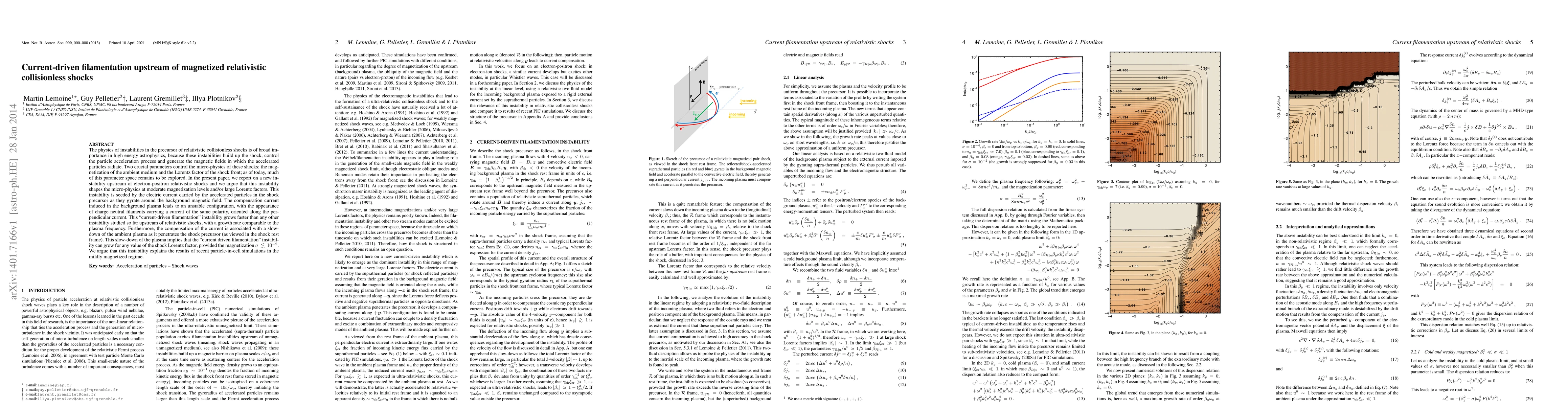 This paper investigates a new instability upstream of relativistic collisionless shocks, termed "current-driven filamentation," which is driven by electric currents from gyrating particles and leads to the formation of charge-neutral filaments. This instability grows rapidly and can influence shock micro-physics under moderate magnetization and high Lorentz factors.