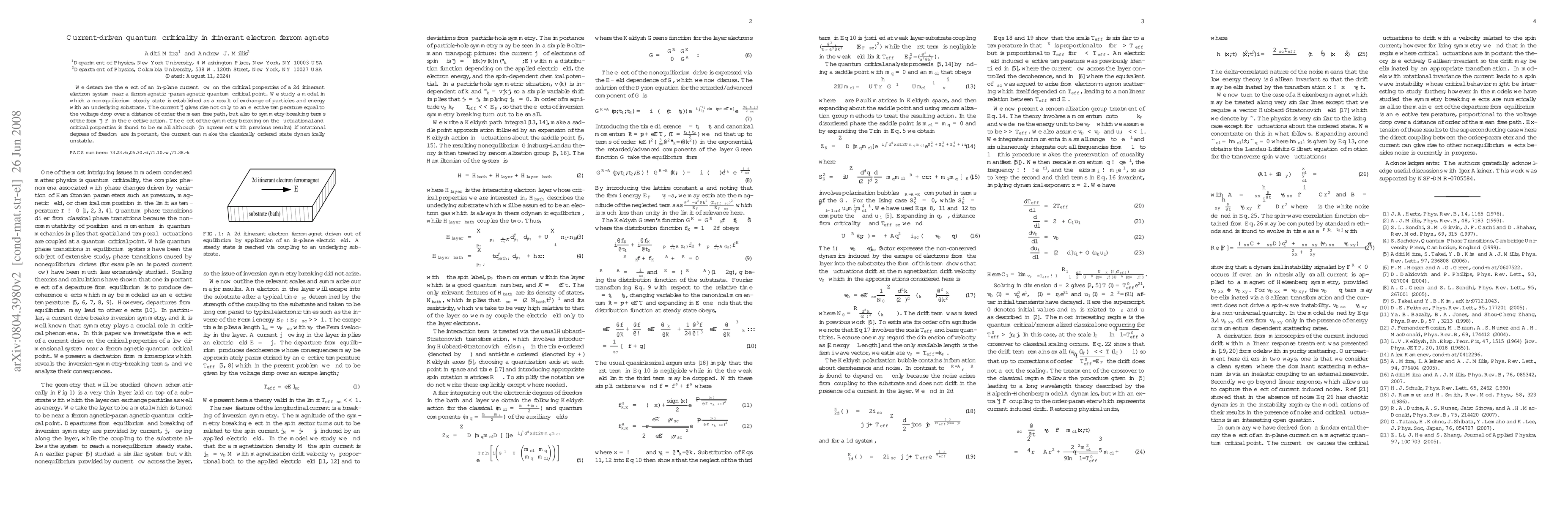 Research explores how an in-plane current affects a 2D itinerant electron system near a ferromagnetic-paramagnetic quantum critical point, introducing symmetry-breaking terms that make the classically ordered state dynamically unstable.