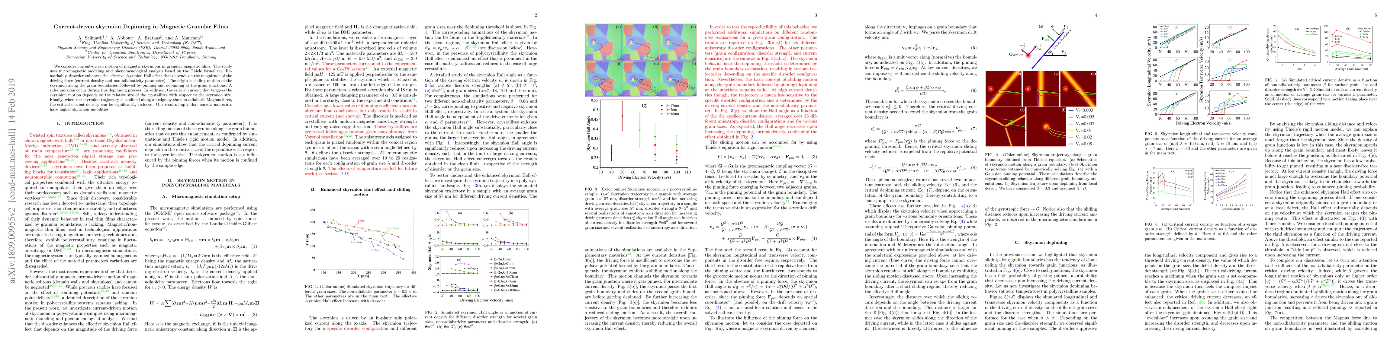 The paper presents a detailed analysis of skyrmion motion in granular magnetic films, incorporating both micromagnetic simulations and Thiele's rigid motion model to understand the influence of disorder and driving forces.