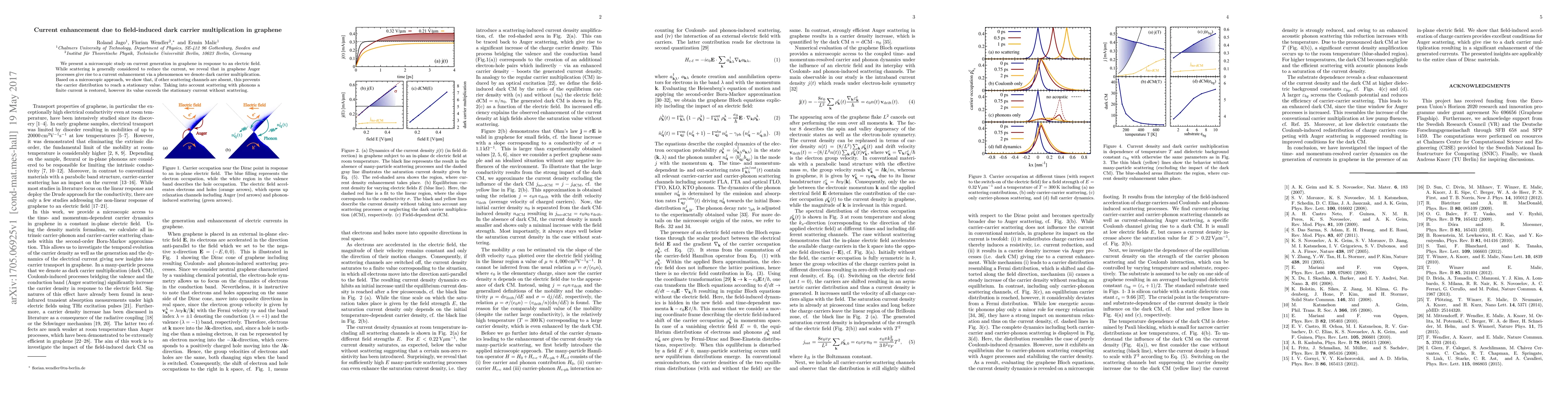 This study demonstrates that in graphene, Auger processes induced by electric fields can enhance current through a phenomenon termed dark carrier multiplication, countering the typical current reduction due to scattering. When scattering with phonons is included, the current exceeds the stationary value without scattering.