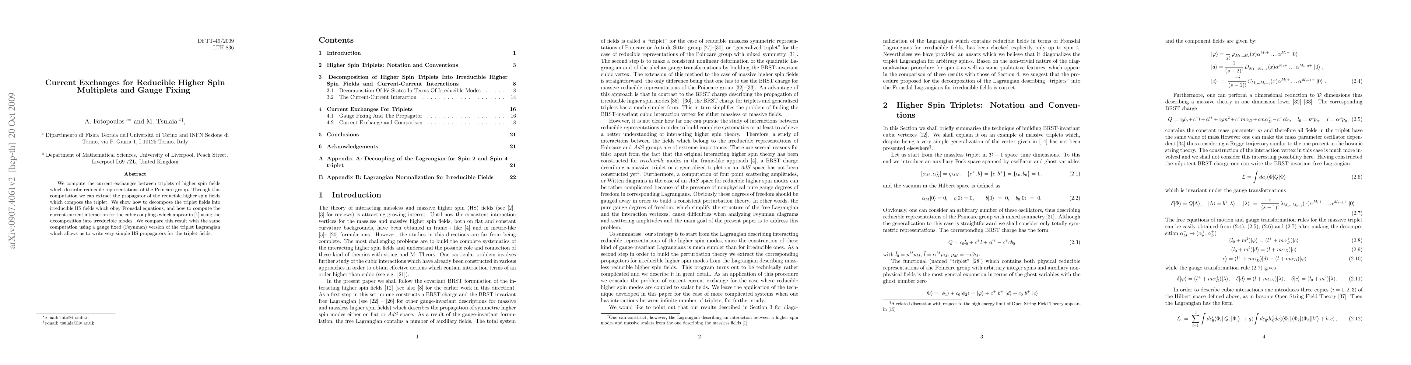 This paper computes current exchanges between triplets of higher spin fields representing reducible Poincaré group representations, extracting their propagators and decomposing them into irreducible HS fields obeying Fronsdal equations. It also compares these results with gauge-fixed (Feynman) Lagrangian computations, yielding simple propagators for the triplet fields.