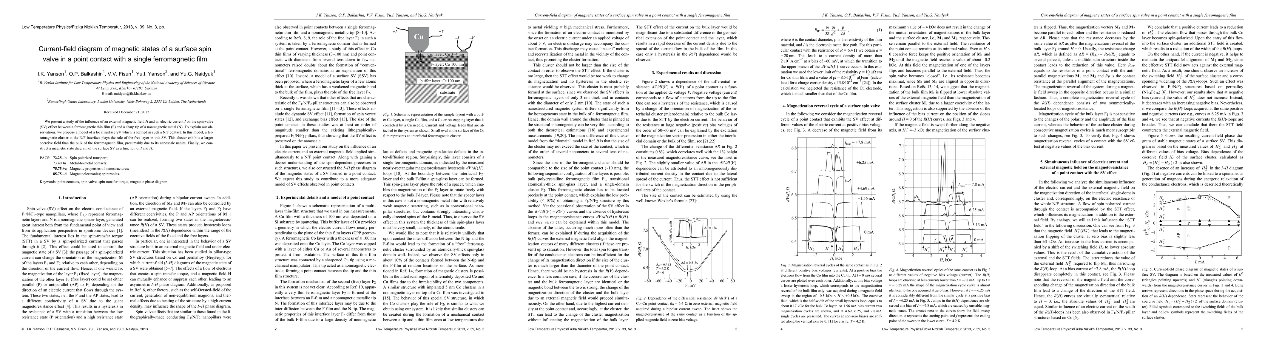 The proposed model of a surface SV with a ferromagnetic cluster at the N/F interface as the free layer, exhibiting a larger coercive field, offers a new perspective on the spin-valve effect in nanoscale structures and its dependence on electric current and magnetic field.