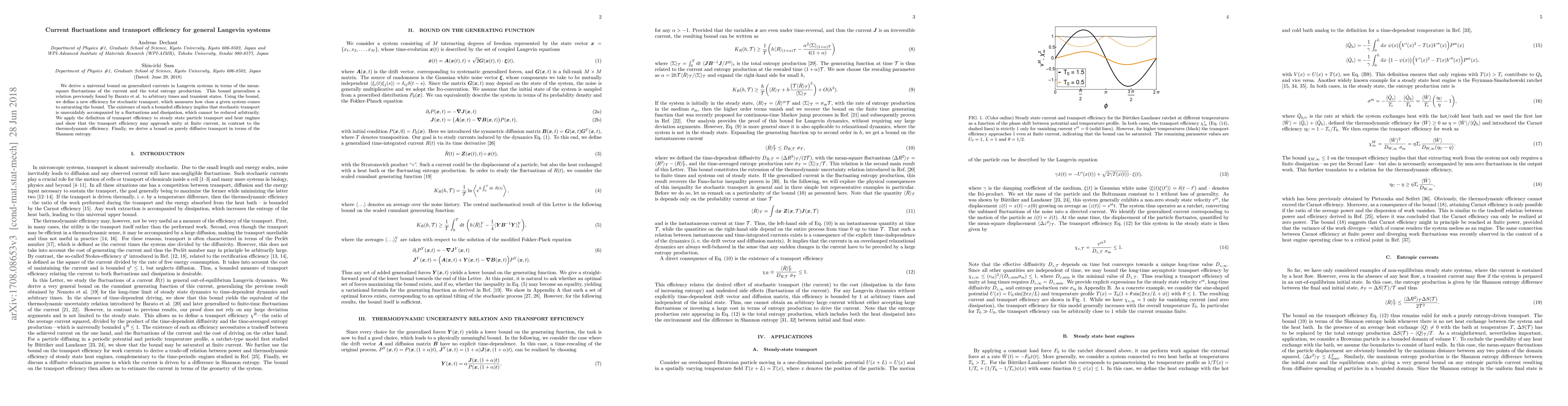 We derive a universal bound on generalized currents in Langevin systems in terms of the mean-square fluctuations of the current and the total entropy production. This bound generalizes a relation previously found by Barato et al. to arbitrary times and transient states. Using the bound, we define a new efficiency for stochastic transport, which measures how close a given system comes to saturating the bound. The existence of such a bounded efficiency implies that stochastic transport is unavoidably accompanied by a fluctuations and dissipation, which cannot be reduced arbitrarily. We apply the definition of transport efficiency to steady state particle transport and heat engines and show that the transport efficiency may approach unity at finite current, in contrast to the thermodynamic efficiency. Finally, we derive a bound on purely diffusive transport in terms of the Shannon entropy.