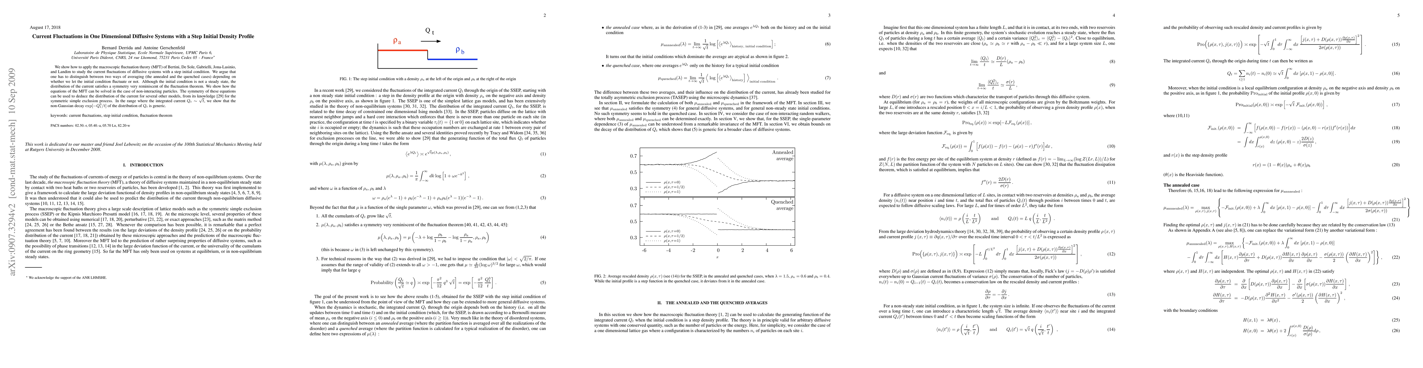 This paper applies macroscopic fluctuation theory to analyze current fluctuations in one-dimensional diffusive systems with a step initial density profile, distinguishing between annealed and quenched averaging. It demonstrates the non-Gaussian decay of integrated current and uses symmetry to extend findings to other models.