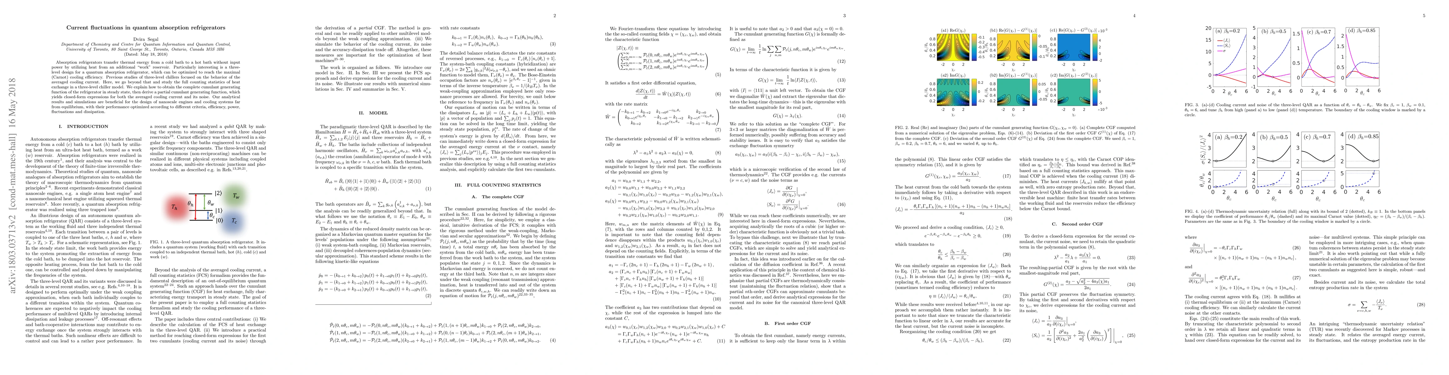 Absorption refrigerators transfer thermal energy from a cold bath to a hot bath without input power by utilizing heat from an additional "work" reservoir. Particularly interesting is a three-level design for a quantum absorption refrigerator, which can be optimized to reach the maximal (Carnot) cooling efficiency. Previous studies of three-level chillers focused on the behavior of the averaged cooling current. Here, we go beyond that and study the full counting statistics of heat exchange in a three-level chiller model. We explain how to obtain the complete cumulant generating function of the refrigerator in steady state, then derive a partial cumulant generating function, which yields closed-form expressions for both the averaged cooling current and its noise. Our analytical results and simulations are beneficial for the design of nanoscale engines and cooling systems far from equilibrium, with their performance optimized according to different criteria, efficiency, power, fluctuations and dissipation.