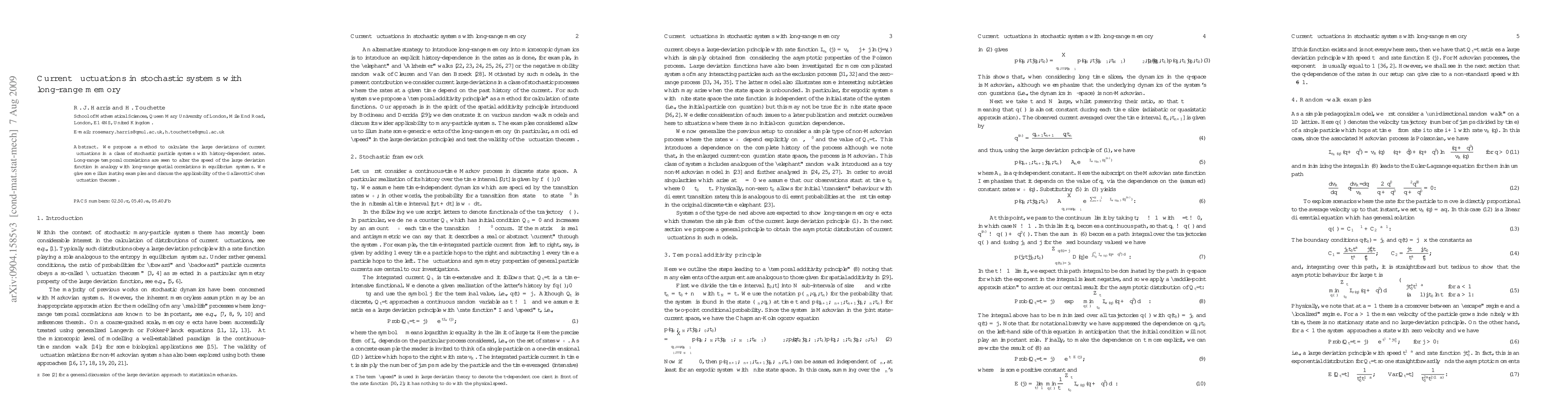 We propose a method to calculate the large deviations of current fluctuations in a class of stochastic particle systems with history-dependent rates. Long-range temporal correlations are seen to alter the speed of the large deviation function in analogy with long-range spatial correlations in equilibrium systems. We give some illuminating examples and discuss the applicability of the Gallavotti-Cohen fluctuation theorem.