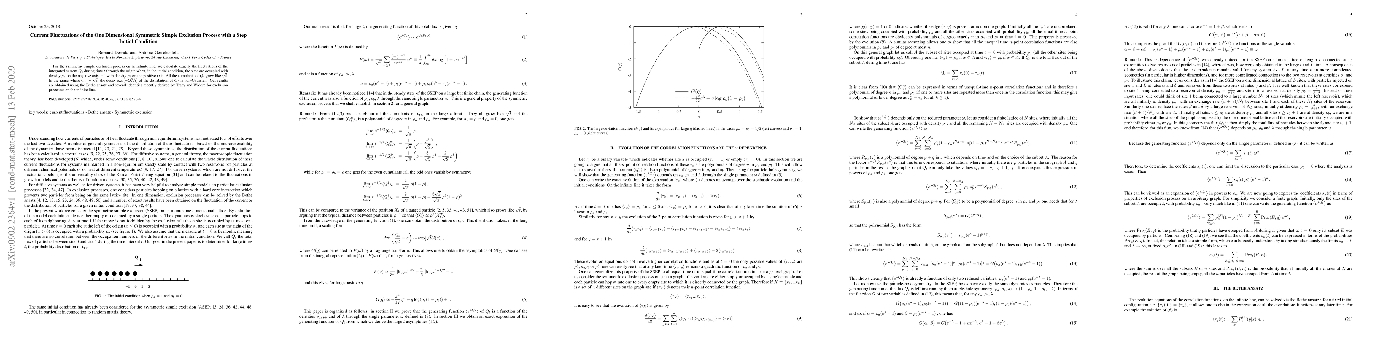 This paper calculates the exact fluctuations of the integrated current $Q_t$ in a one-dimensional symmetric simple exclusion process with step initial conditions, showing that all cumulants grow like $\sqrt{t}$ and the distribution's decay is non-Gaussian in the $Q_t \sim \sqrt{t}$ range. The results are derived using the Bethe ansatz and identities from Tracy and Widom.