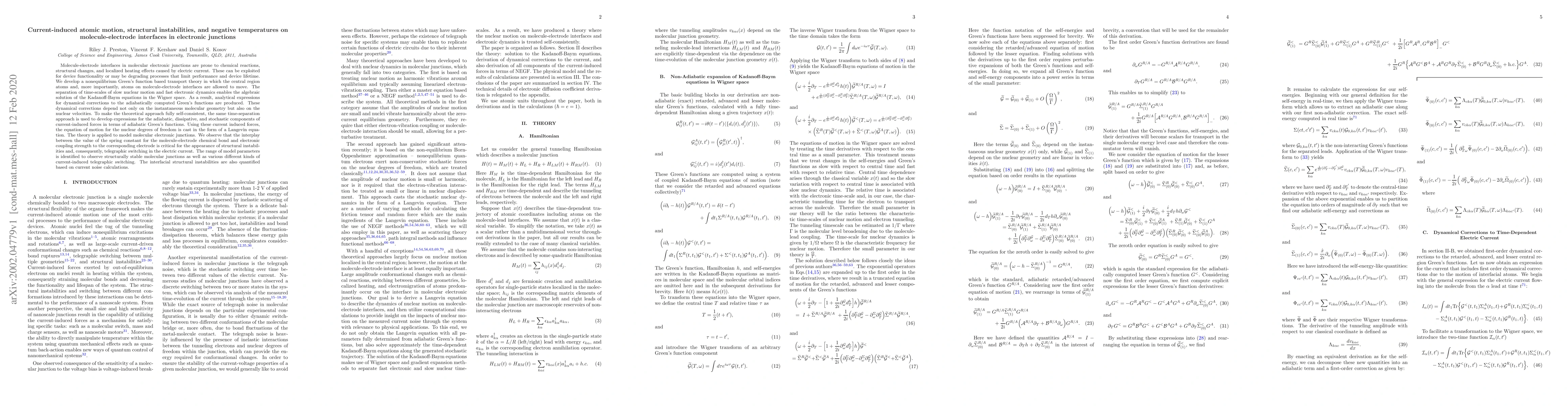 Researchers develop a new theoretical framework to study the effects of electric current on molecule-electrode interfaces in electronic junctions, revealing critical parameters that lead to structural instabilities and telegraphic switching.