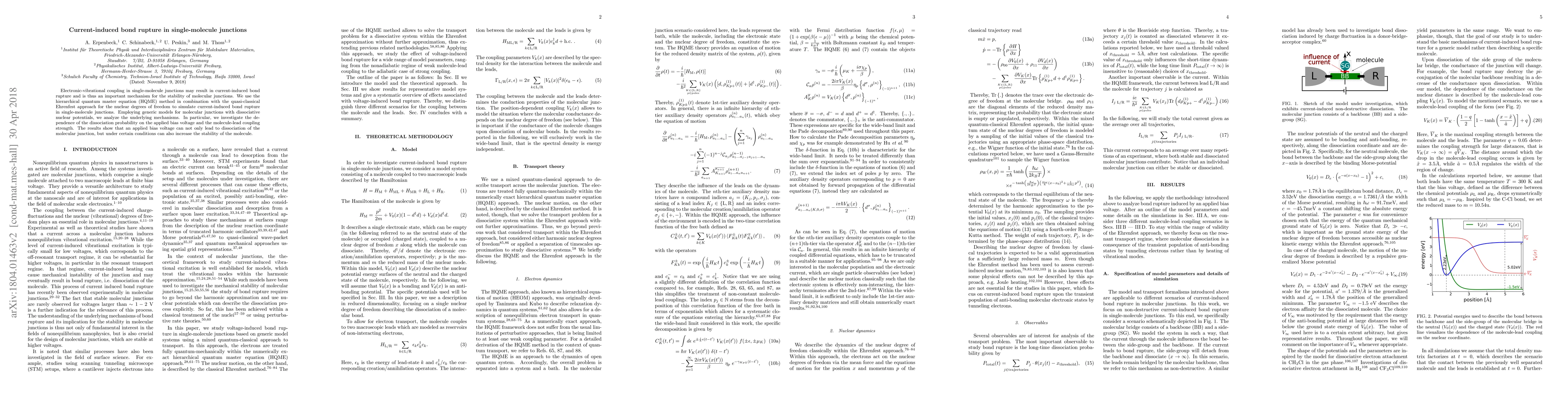 This paper investigates current-induced bond rupture in single-molecule junctions using the hierarchical quantum master equation and quasi-classical Ehrenfest approach. It reveals that applied bias voltage can lead to dissociation or, under certain conditions, enhance the stability of molecular junctions, depending on the molecule-lead coupling strength.