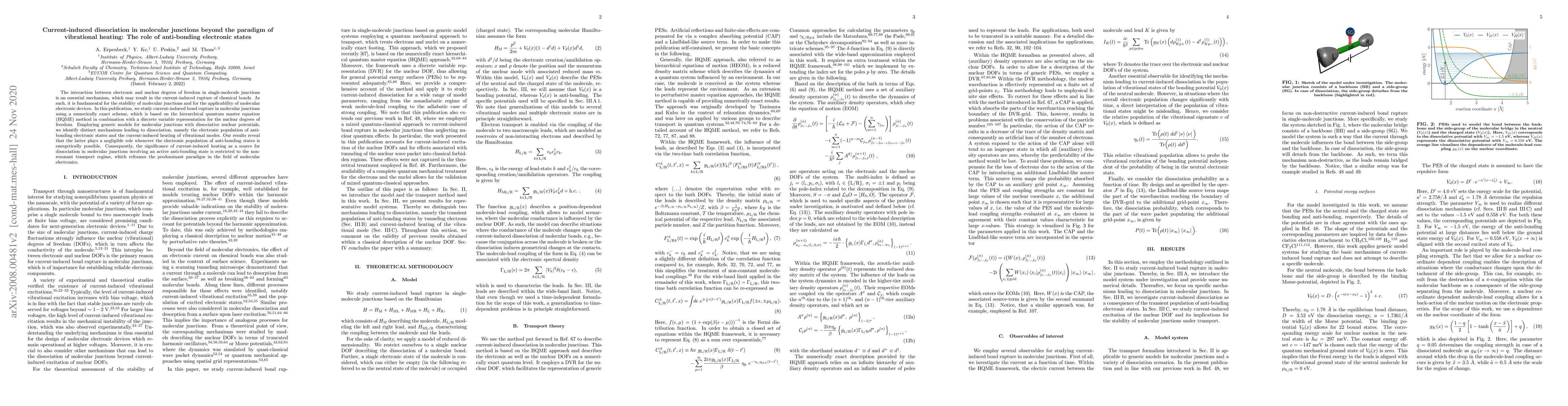 This paper explores current-induced dissociation in molecular junctions, identifying that electronic population of anti-bonding states is a primary mechanism for bond rupture, while current-induced vibrational heating plays a minor role when anti-bonding states are accessible. This challenges the prevailing paradigm of vibrational heating as the main cause of dissociation.