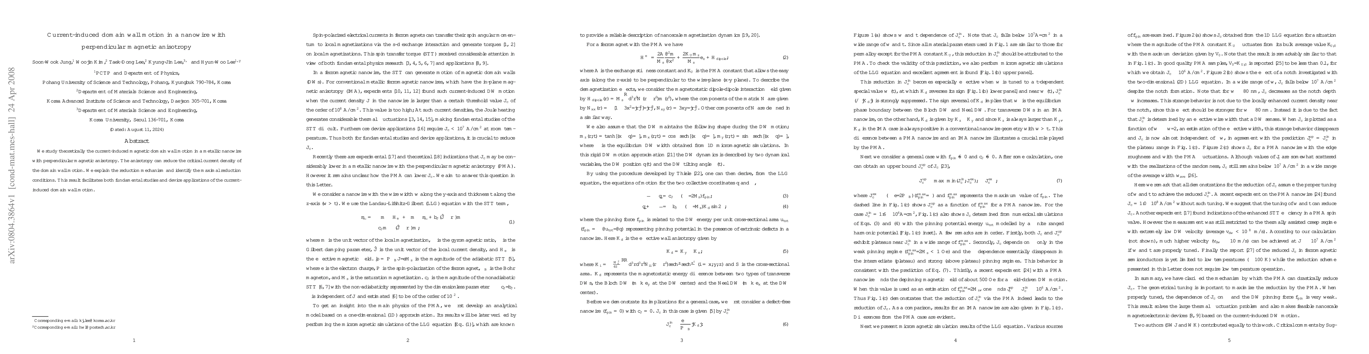 Theoretical study of current-induced domain wall motion in a metallic nanowire with perpendicular magnetic anisotropy.