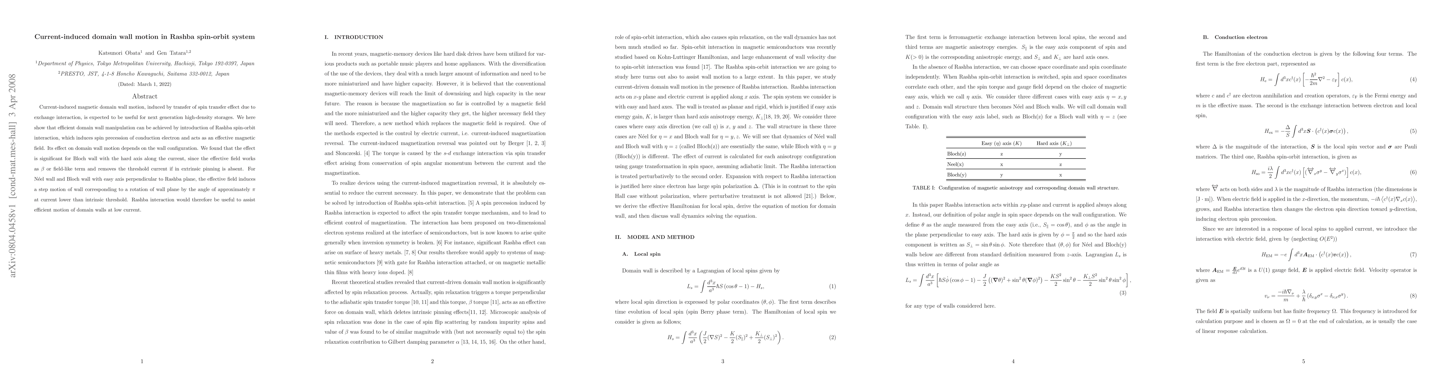 This paper investigates how introducing Rashba spin-orbit interaction can enhance current-induced magnetic domain wall motion, revealing significant effects for Bloch walls with the hard axis along the current, and inducing step motion for N\'eel walls and Bloch walls with the easy axis perpendicular to the Rashba plane.