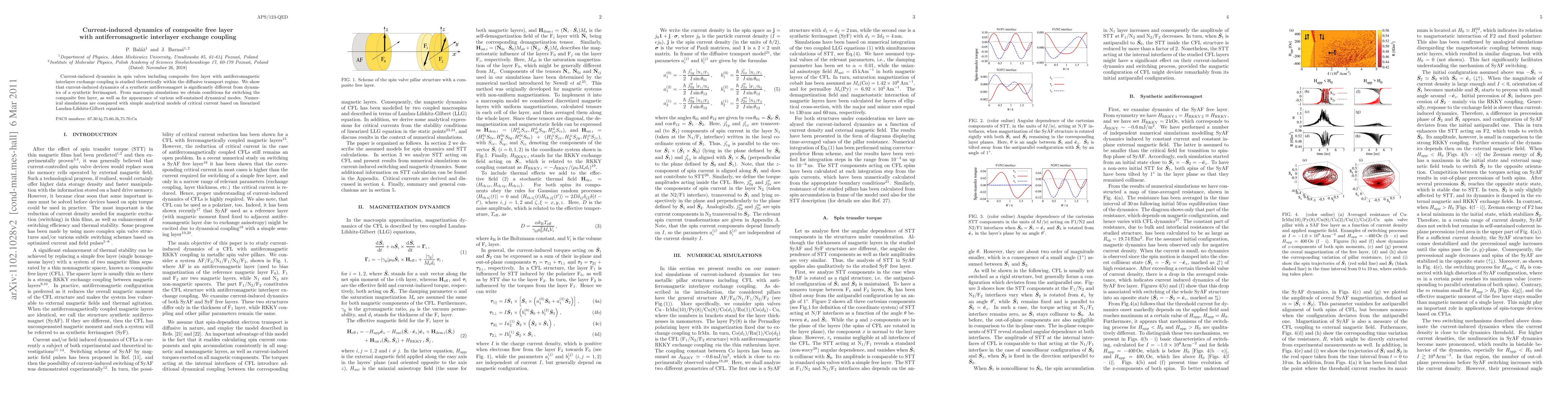 Current-induced dynamics in spin valves including composite free layer with antiferromagnetic interlayer exchange coupling is studied theoretically within the diffusive transport regime. We show that current-induced dynamics of a synthetic antiferromagnet is significantly different from dynamics of a synthetic ferrimagnet. From macrospin simulations we obtain conditions for switching the composite free layer, as well as for appearance of various self-sustained dynamical modes. Numerical simulations are compared with simple analytical models of critical current based on linearized Landau-Lifshitz-Gilbert equation.