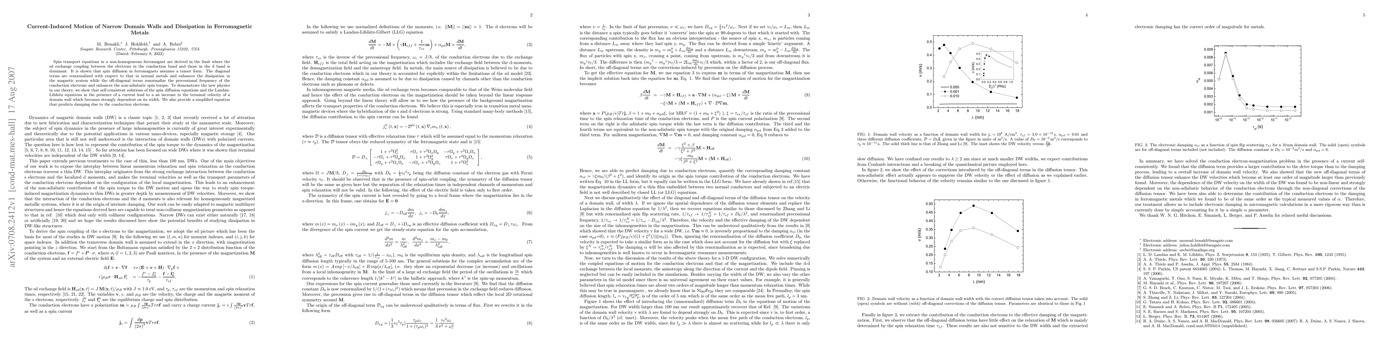Spin transport equations in a non-homogeneous ferromagnet are derived in the limit where the sd exchange coupling between the electrons in the conduction band and those in the d band is dominant. It is shown that spin diffusion in ferromagnets assumes a tensor form. The diagonal terms are renormalized with respect to that in normal metals and enhances the dissipation in the magnetic system while the off-diagonal terms renormalize the precessional frequency of the conduction electrons and enhances the non-adiabatic spin torque. To demonstrate the new physics in our theory, we show that self-consistent solutions of the spin diffusion equations and the Landau-Lifshitz equations in the presence of a current lead to a an increase in the terminal velocity of a domain wall which becomes strongly dependent on its width. We also provide a simplified equation that predicts damping due to the conduction electrons.