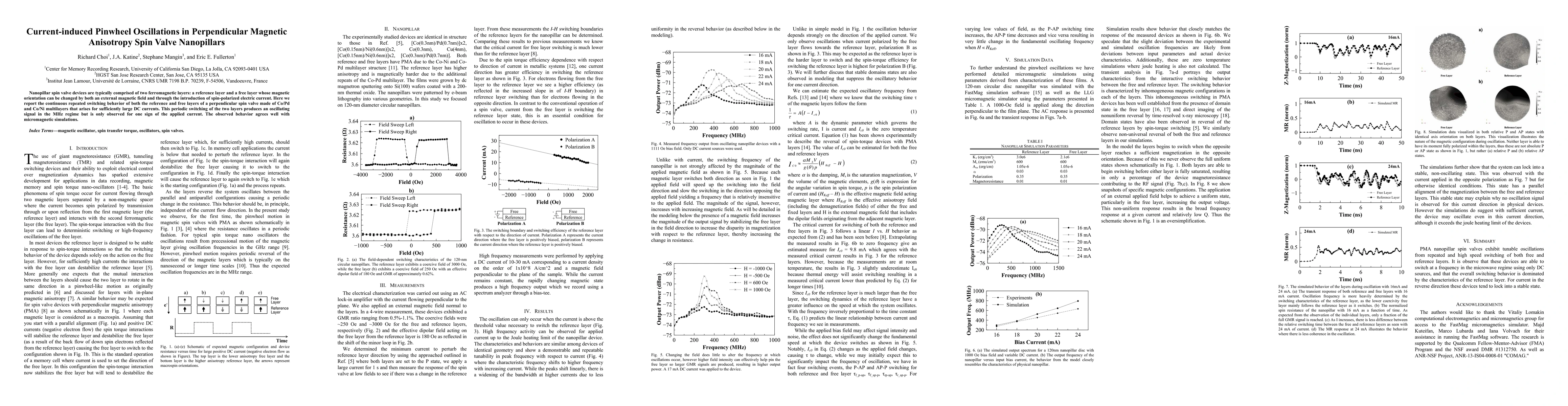 This study investigates the current-induced pinwheel oscillations in spin valve nanopillars with perpendicular magnetic anisotropy, revealing periodic switching in both reference and free layers under large DC currents, producing MHz-regime oscillations, corroborated by micromagnetic simulations.
