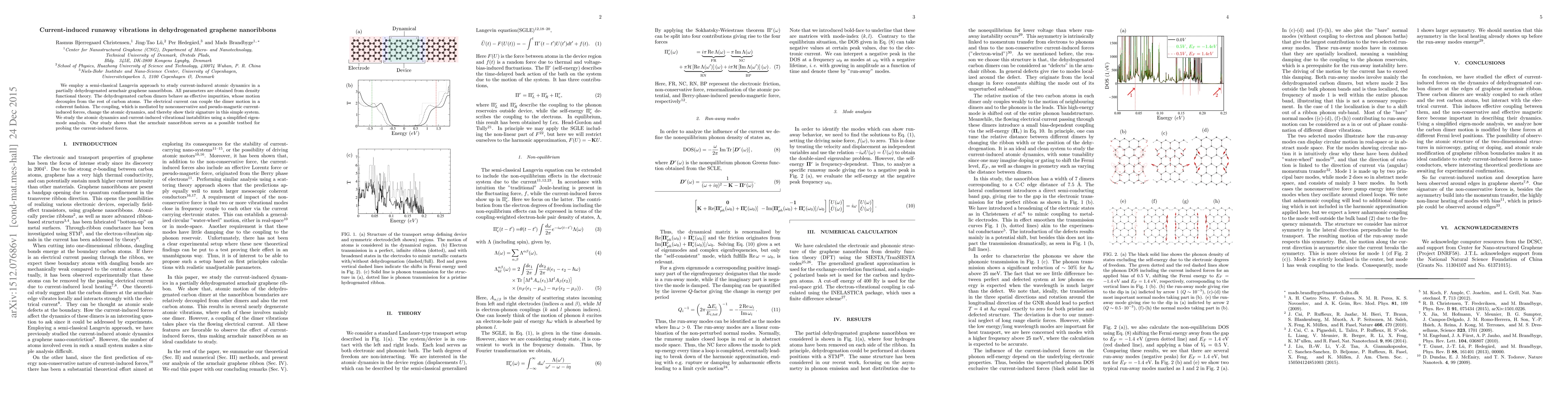 This research utilizes a semi-classical Langevin approach to investigate current-induced vibrations in partially dehydrogenated armchair graphene nanoribbons, revealing that dehydrogenated carbon dimers act as effective impurities that can be coupled by electrical current through nonconservative forces. The study highlights the nanoribbon as a potential platform for studying current-induced atomic dynamics and instabilities.