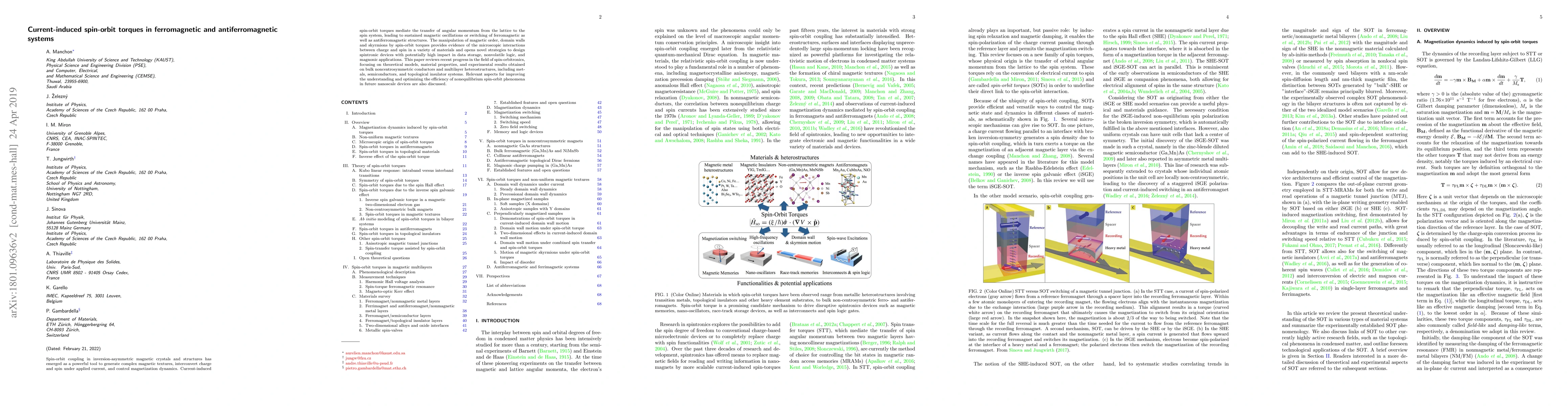This paper reviews recent advances in current-induced spin-orbit torques in ferromagnetic and antiferromagnetic systems, emphasizing theoretical models and experimental findings on diverse materials. It explores how these torques manipulate magnetic order and dynamics, with implications for spintronic devices in data storage and logic.