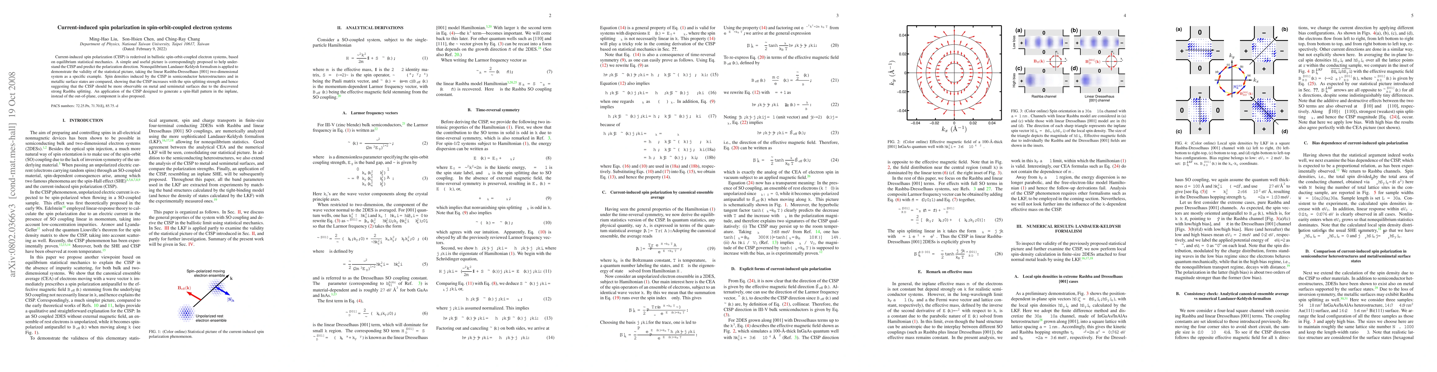 This paper rederives current-induced spin polarization (CISP) in spin-orbit-coupled two-dimensional electron systems, proposing a statistical mechanics framework to predict polarization direction and demonstrating its validity using the Landauer-Keldysh formalism. It suggests CISP is more pronounced in systems with strong spin splitting, like metal and semimetal surfaces, and proposes a method to generate an inplane spin-Hall pattern.