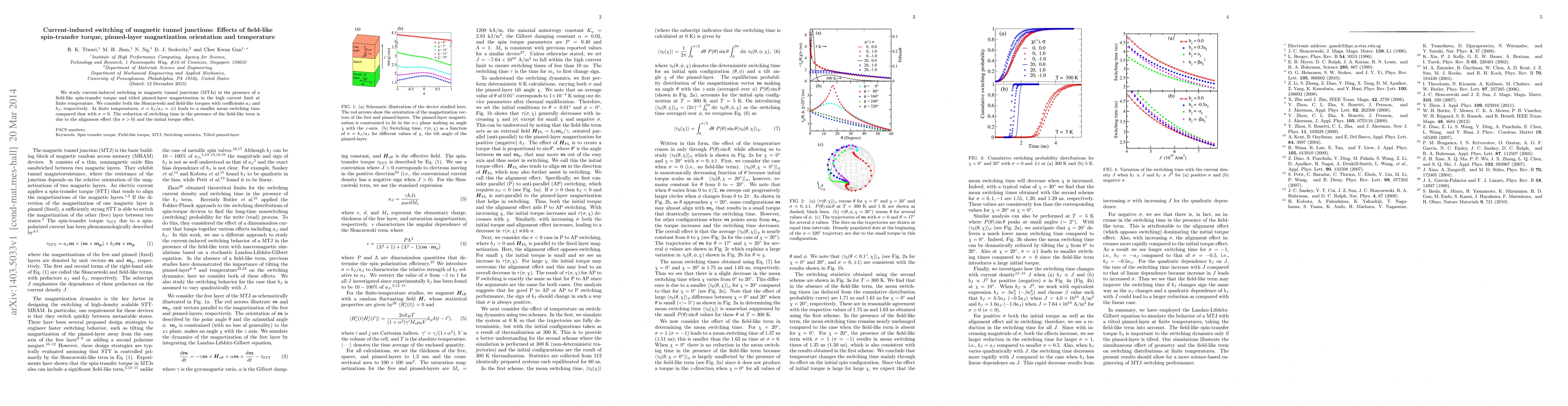 This research investigates current-induced switching in magnetic tunnel junctions, focusing on the effects of spin-transfer torques and pinned-layer magnetization orientation at finite temperatures. It finds that when $\sigma=b_J/a_J=±1$, switching times are reduced due to alignment and initial torque effects.