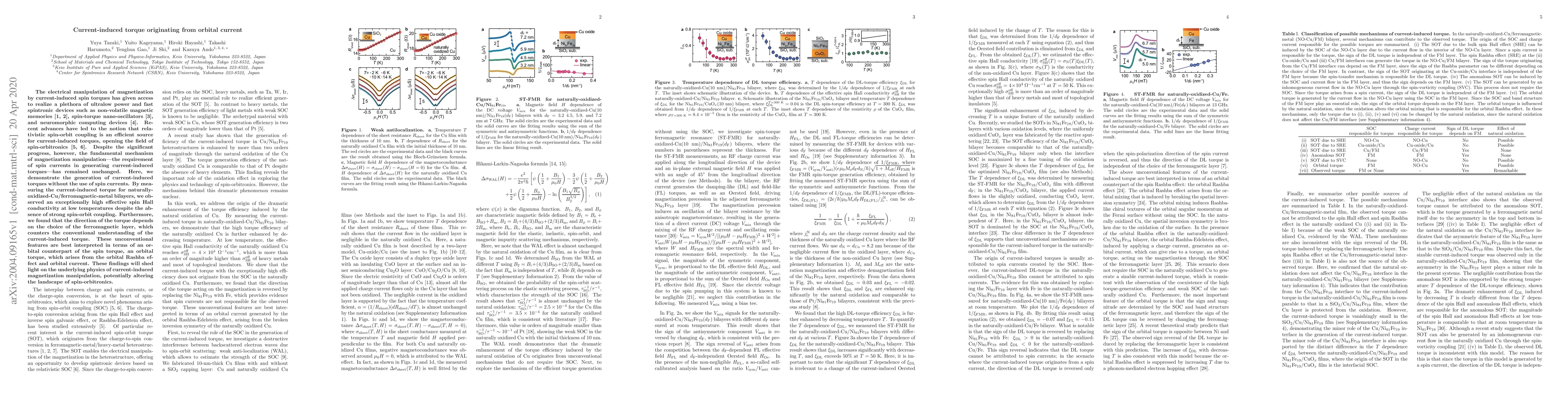 This paper demonstrates the generation of current-induced torques without spin currents, revealing high effective spin Hall conductivity in naturally-oxidized Cu/ferromagnetic-metal bilayers. It introduces the concept of orbital torques arising from the orbital Rashba effect, challenging conventional understanding and opening new possibilities in spin-orbitronics.