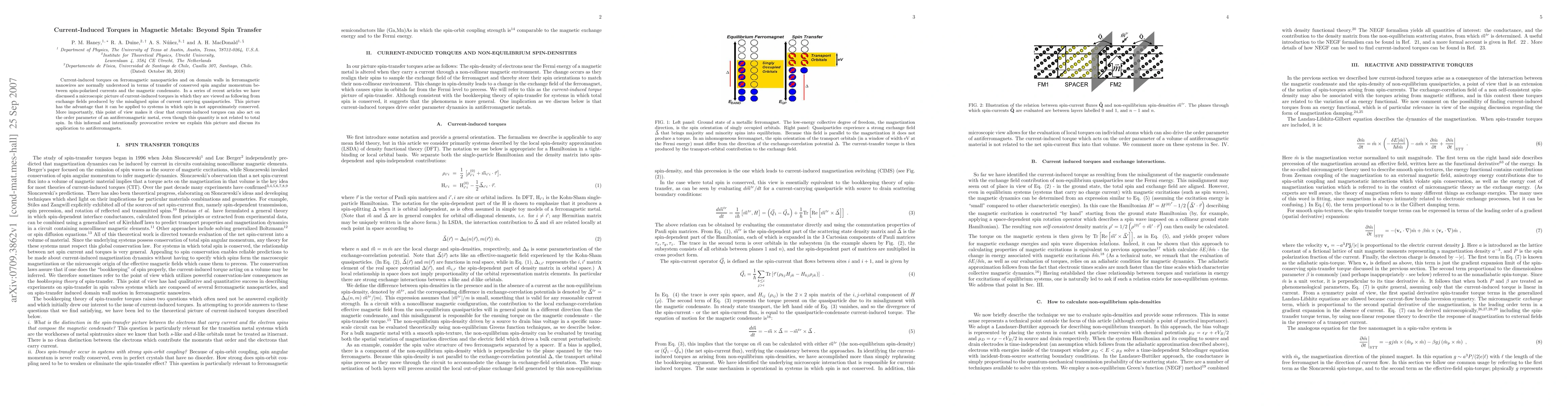 This paper proposes a new microscopic perspective on current-induced torques in magnetic metals, emphasizing exchange fields from misaligned quasiparticle spins rather than spin transfer. It highlights the ability of this model to explain torques in systems where spin is not conserved, including antiferromagnetic metals.