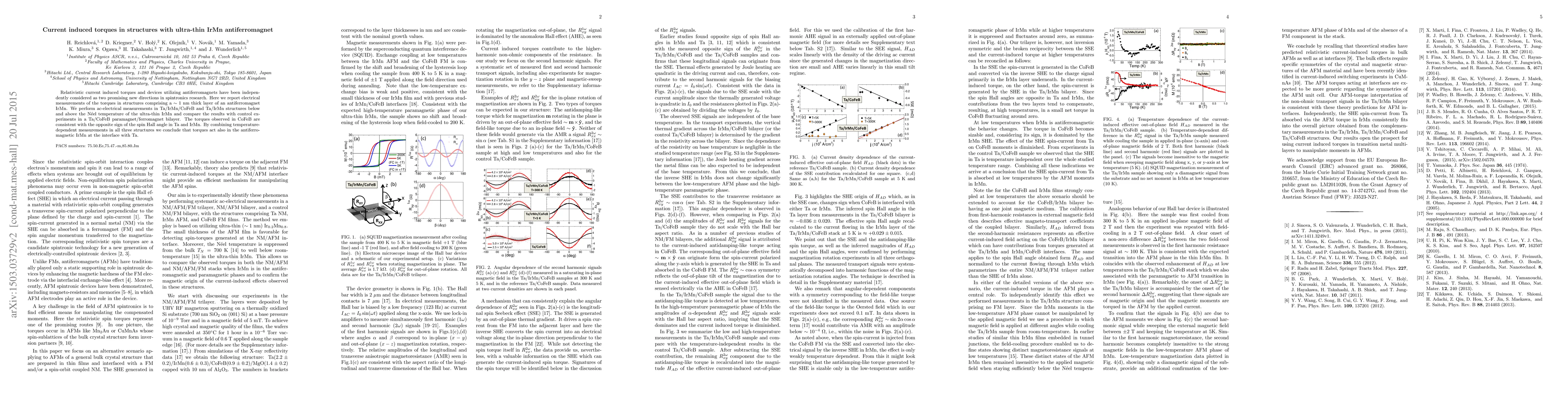 This paper investigates relativistic current-induced torques in ultra-thin IrMn antiferromagnetic layers, finding that the torque in a Ta/IrMn/CoFeB structure diminishes at high temperatures and changes sign at low temperatures, indicating the influence of IrMn's antiferromagnetic phase on the torque acting on the CoFeB ferromagnet.