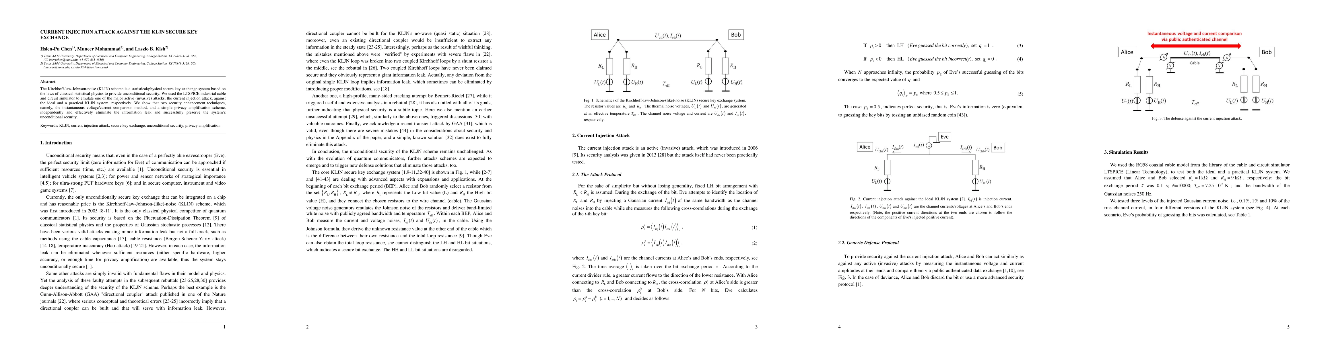 This paper investigates the current injection attack against the KLJN secure key exchange system, demonstrating its effectiveness using LTSPICE simulations. The study finds that two security enhancement techniques—instantaneous voltage/current comparison and a privacy amplification scheme—effectively neutralize the attack and maintain the system's unconditional security.