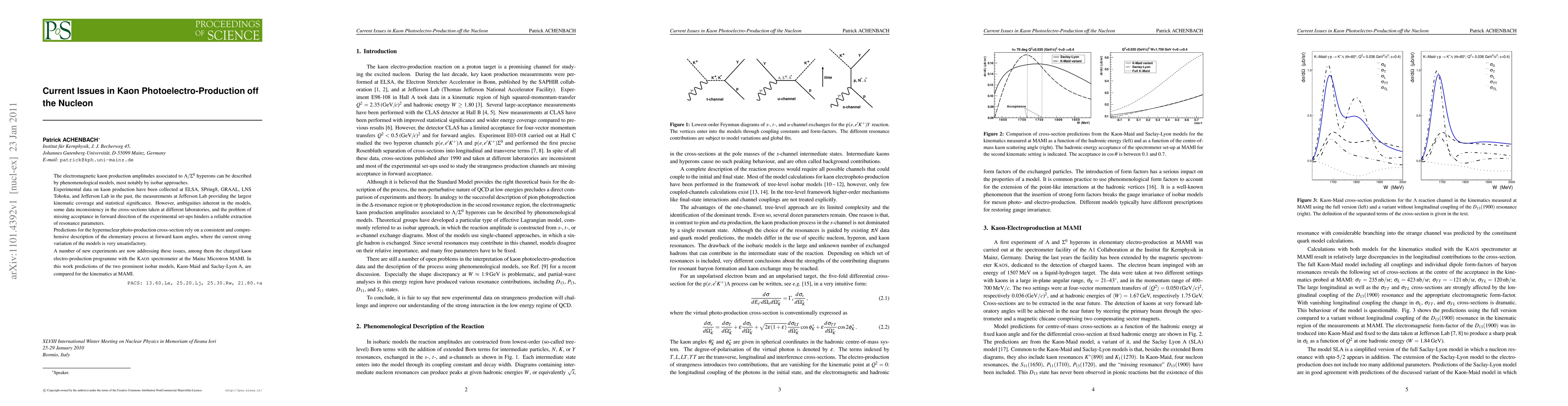 The electromagnetic kaon production amplitudes associated to Lambda/Sigma hyperons can be described by phenomenological models, most notably by isobar approaches. Experimental data on kaon production have been collected at ELSA, SPring8, GRAAL, LNS Tohoku, and Jefferson Lab in the past, the measurements at Jefferson Lab providing the largest kinematic coverage and statistical significance. However, ambiguities inherent in the models, some data inconsistency in the cross-sections taken at different laboratories, and the problem of missing acceptance in forward direction of the experimental set-ups hinders a reliable extraction of resonance parameters. Predictions for the hypernuclear photo-production cross-section rely on a consistent and comprehensive description of the elementary process at forward kaon angles, where the current strong variation of the models is very unsatisfactory. A number of new experiments are now addressing these issues, among them the charged kaon electro-production programme with the Kaos spectrometer at the Mainz Microtron MAMI. In this work predictions of the two prominent isobar models, Kaon-Maid and Saclay-Lyon A, are compared for the kinematics at MAMI.