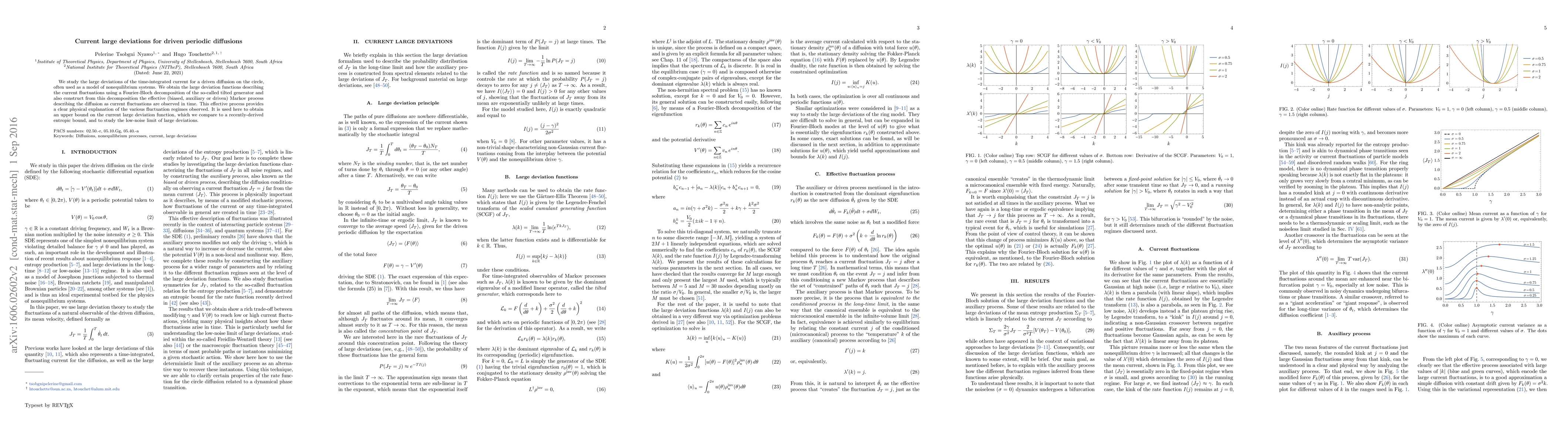 This paper studies large deviations in driven periodic diffusions on a circle, providing an effective Markov process to explain fluctuation regimes and obtaining upper bounds on current large deviation functions.