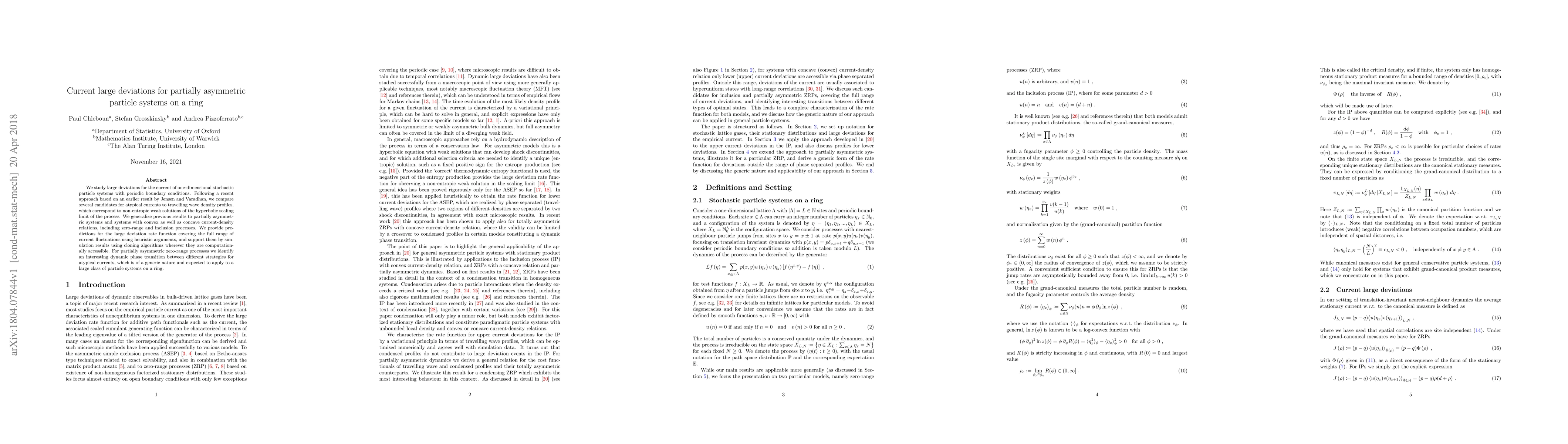 This research generalizes large deviations for current in one-dimensional stochastic particle systems on a ring, including partially asymmetric systems. It identifies dynamic phase transitions in partially asymmetric zero-range processes and supports findings with simulations, offering predictions for the large deviation rate function across all current fluctuations.