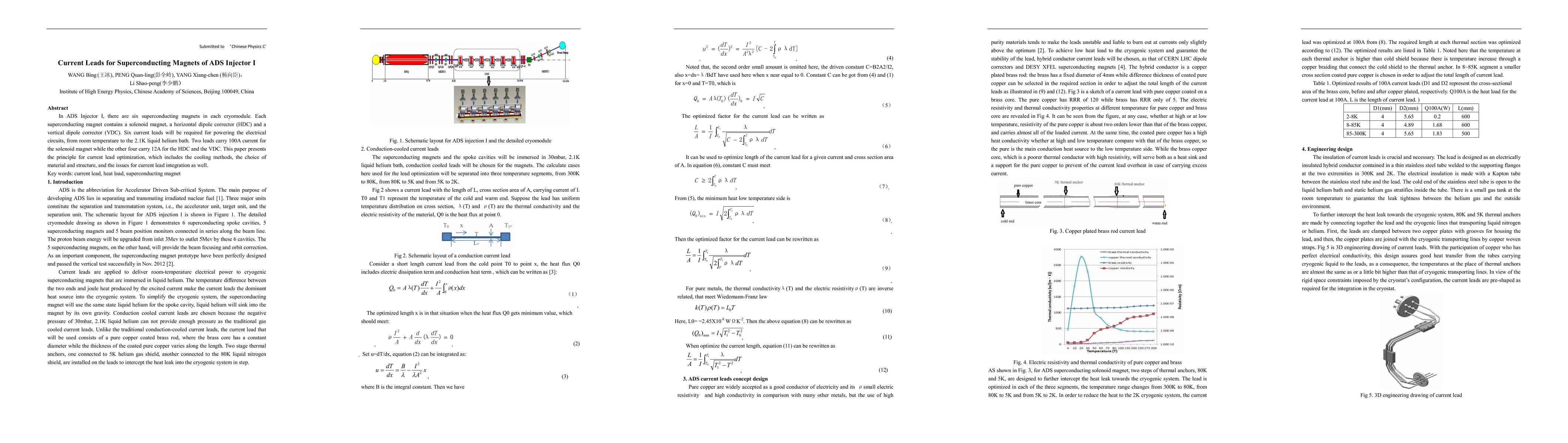 This paper explores the optimization of current leads for superconducting magnets in ADS Injector I, focusing on cooling methods, material selection, and structural design to efficiently transport 100A and 12A currents from room temperature to a 2.1K liquid helium bath. It addresses integration challenges for the current leads in the magnet system.