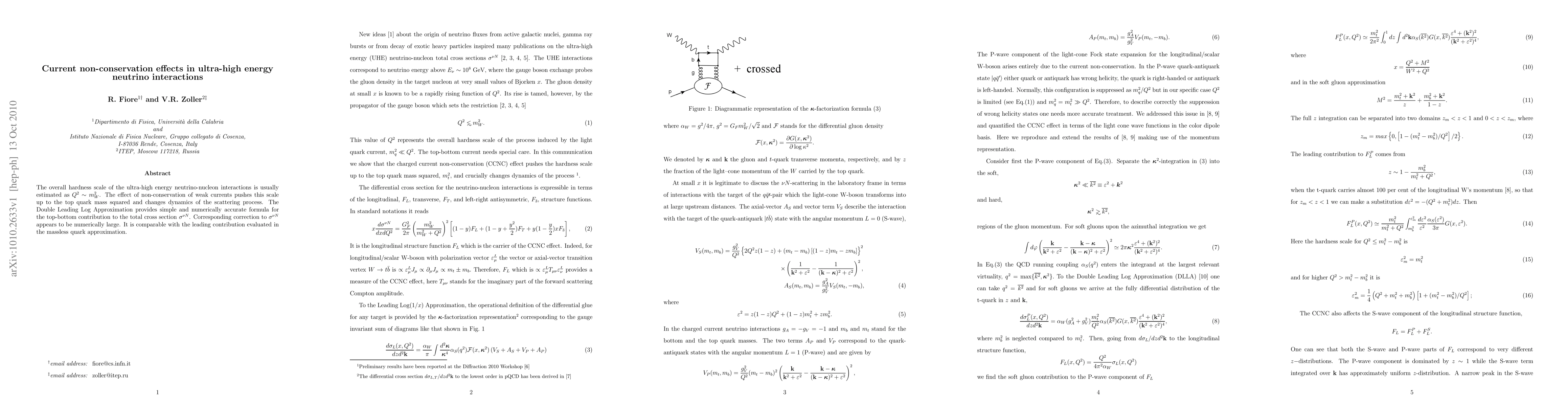 This paper investigates the impact of non-conservation of weak currents on ultra-high energy neutrino-nucleon interactions, revealing that it elevates the interaction scale to the top quark mass squared. The Double Leading Log Approximation is used to derive a significant correction to the total cross section, comparable to the leading contribution in the massless quark approximation.