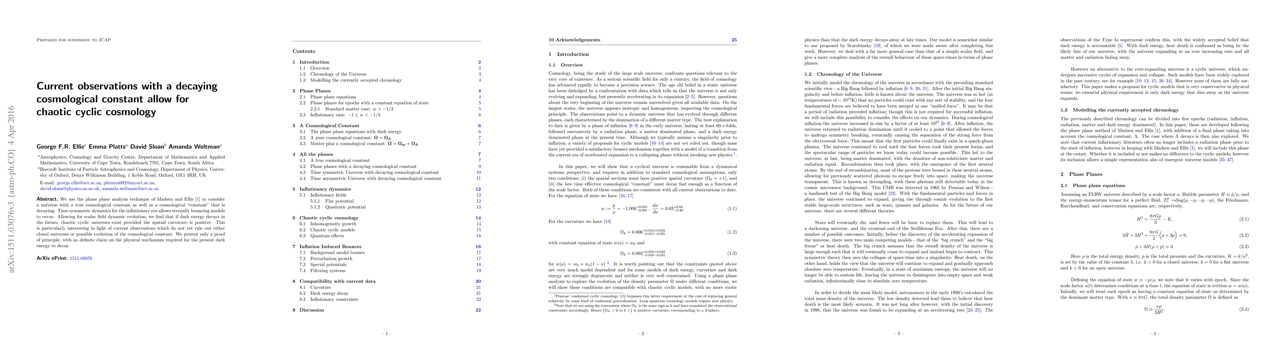 This paper explores chaotic cyclic cosmology models using phase plane analysis, finding that a decaying cosmological constant can lead to eternally bouncing universes if spatial curvature is positive. Current observations do not rule out such scenarios, suggesting potential cyclic universes despite the lack of a definitive mechanism for dark energy decay.