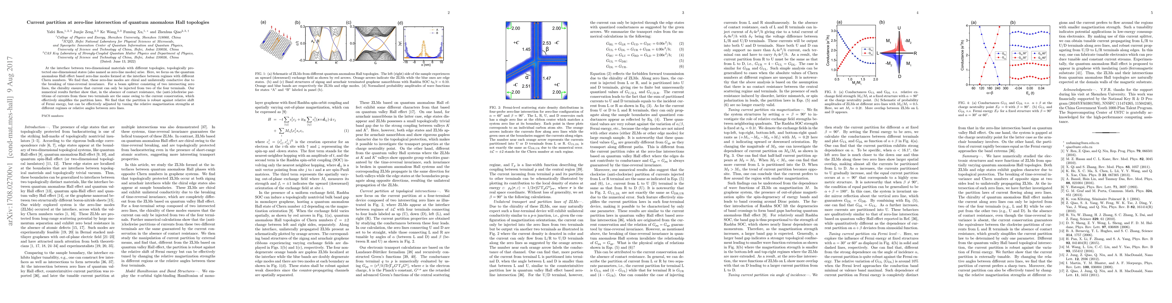 At the interface between two-dimensional materials with different topologies, topologically protected one-dimensional states (also named as zero-line modes) arise. Here, we focus on the quantum anomalous Hall effect based zero-line modes formed at the interface between regimes with different Chern numbers. We find that, these zero-line modes are chiral and unilaterally conductive due to the breaking of time-reversal invariance. For a beam splitter consisting of two intersecting zero lines, the chirality ensures that current can only be injected from two of the four terminals. Our numerical results further show that, in the absence of contact resistance, the (anti-)clockwise partitions of currents from these two terminals are the same owing to the current conservation, which effectively simplifies the partition laws. We find that the partition is robust against relative shift of Fermi energy, but can be effectively adjusted by tuning the relative magnetization strengths at different regimes or relative angles between zero lines.
