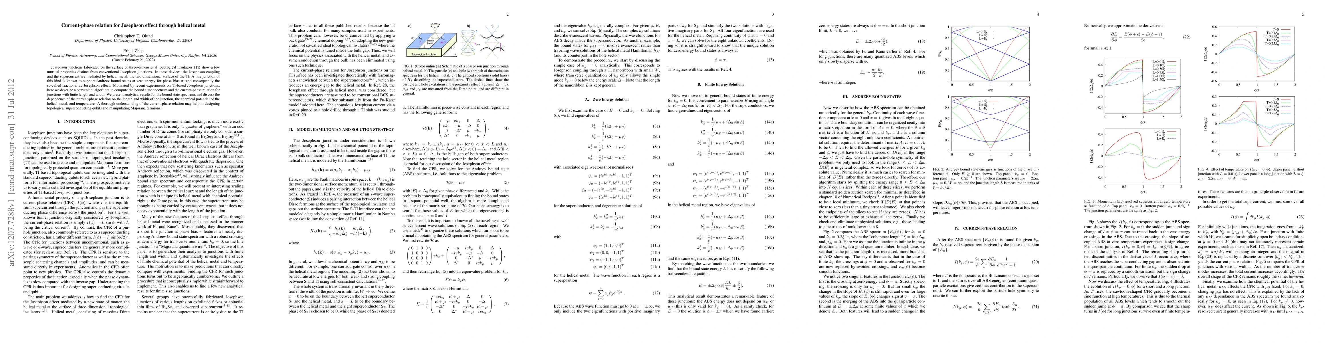 This paper presents an algorithm to compute the current-phase relation for Josephson junctions on topological insulator surfaces, mediated by helical metal, analyzing the bound state spectrum and its dependence on junction dimensions, chemical potential, and temperature. Understanding these relations is crucial for developing topological superconducting qubits and controlling Majorana fermions.