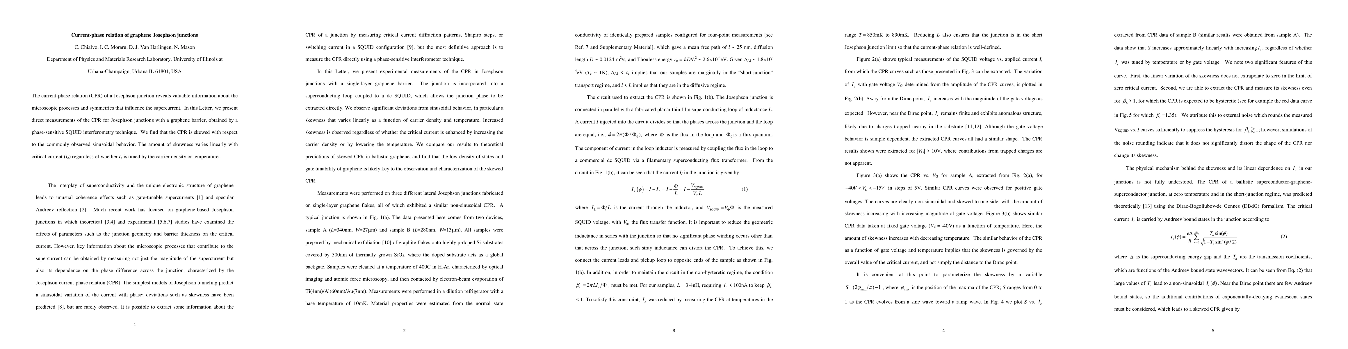 This research presents direct measurements of the current-phase relation (CPR) in graphene Josephson junctions using phase-sensitive SQUID interferometry, revealing a skewness that deviates from the typical sinusoidal behavior, with the degree of skewness varying linearly with critical current regardless of tuning method.