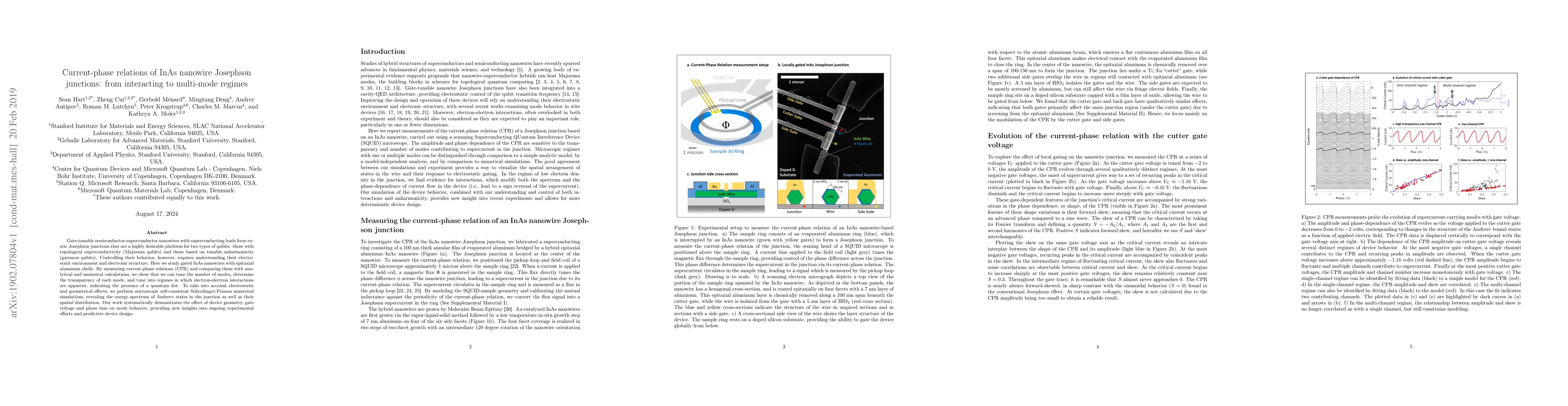 This paper investigates gated InAs nanowire Josephson junctions, demonstrating how current-phase relations can be tuned to explore different operational regimes, including multi-mode and interacting electron behaviors. The study combines experimental measurements, analytical models, and self-consistent Schrödinger-Poisson simulations to provide insights into device geometry and electrostatic effects.