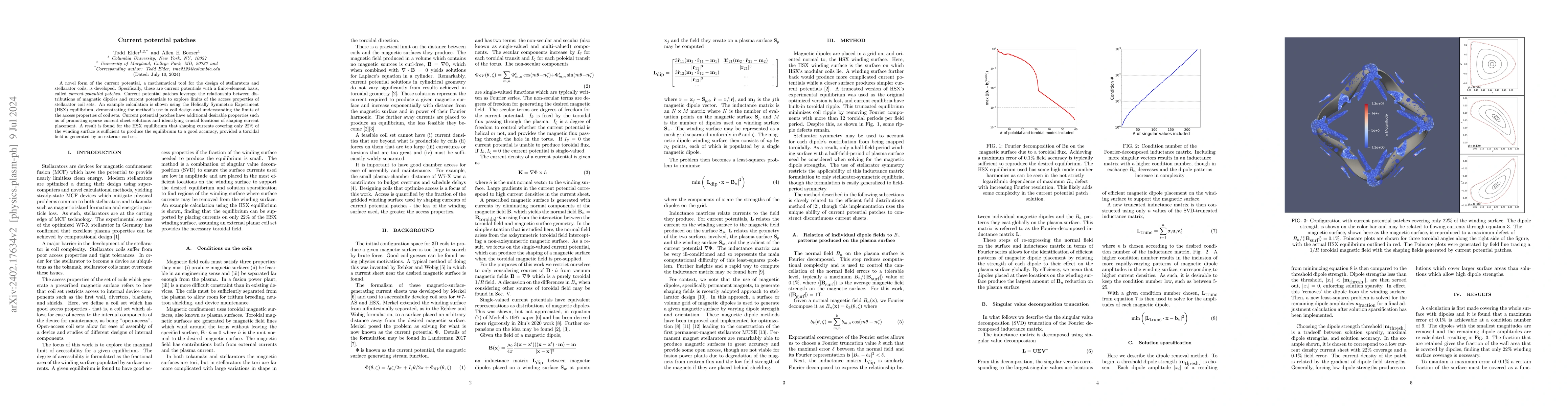 This paper introduces current potential patches, a novel mathematical tool for designing stellarator coils, which leverage magnetic dipole distributions to explore coil set access properties. An example using the HSX equilibrium demonstrates the method's effectiveness, revealing that shaping currents covering just 25% of the winding surface can achieve good equilibrium accuracy.