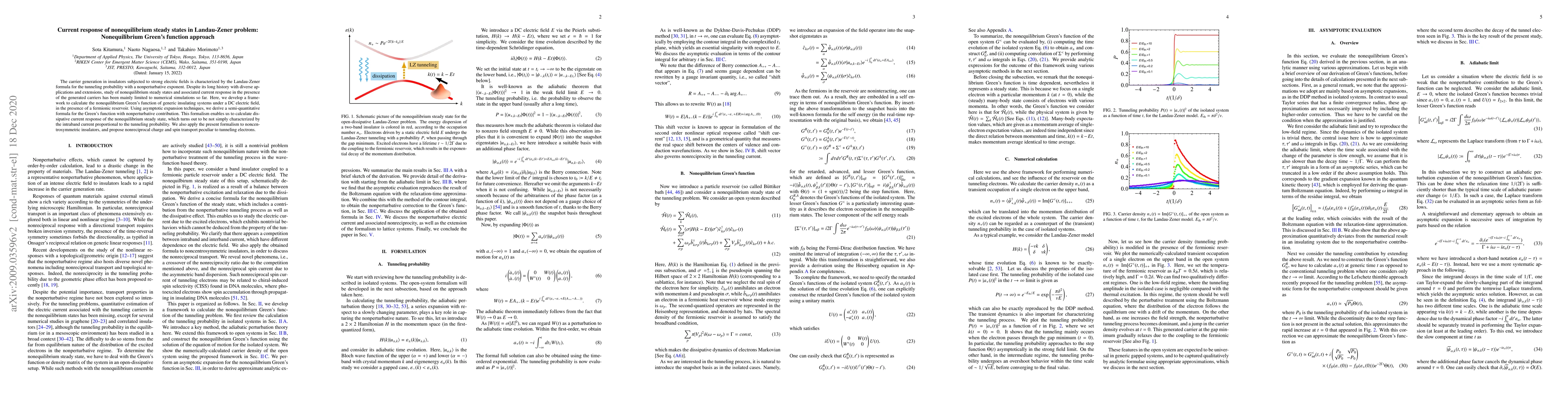 This paper introduces a nonequilibrium Green's function approach to analyze carrier generation in insulators under strong electric fields, extending the Landau-Zener tunneling probability formula. The study provides a semi-quantitative formula for current response in nonequilibrium steady states, revealing that it involves more than just intraband current, and explores nonreciprocal charge and spin transport in noncentrosymmetric insulators.